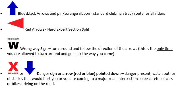 Sign-onSign on will be at the start\finish are as shown on the Location and Camping links and waypoints. Please bring present your bike road licence and bike registration papers.Track Markers (Arrows & signs)